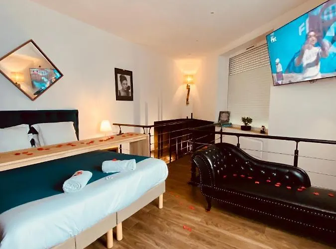 Há quartos com área de jantar e controle de temperatura, bem como cozinha inclui microondas, chaleira elétrica e máquina de lavar louça. A propriedade também tem 1 casas de banho. O apartamento Mieuxqualhotel Jacuzzi Privatif La Retro tem 1 camas. Para o seu conforto, vai encontrar casa de banho à parte e chuveiros nas casas de banho.